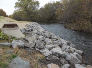 Approximately 205 linear feet of impacted streambank along the Lackawanna River were stabilized and reinforced with rock lining to prevent further erosion and protect the LRBSA’s interceptor pipe, which runs along the river.