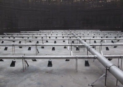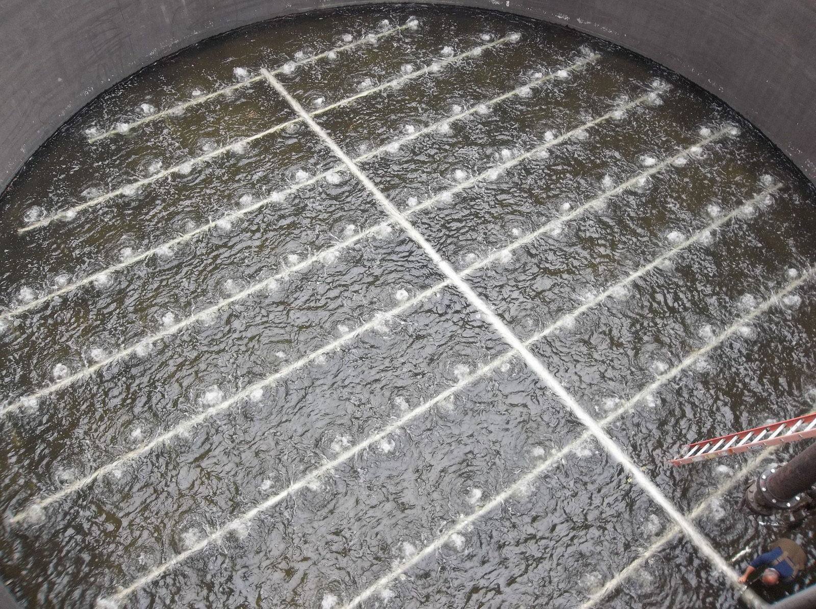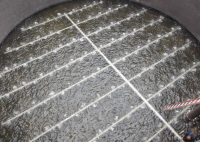 Aerobic Digestion Improvements: Waste sludge is first treated in aerobic digestion tanks, where air is bubbled through to support biological activity that breaks down organic material. The system of pipes and air diffusers in these tanks was upgraded to improve mixing and enhance performance.