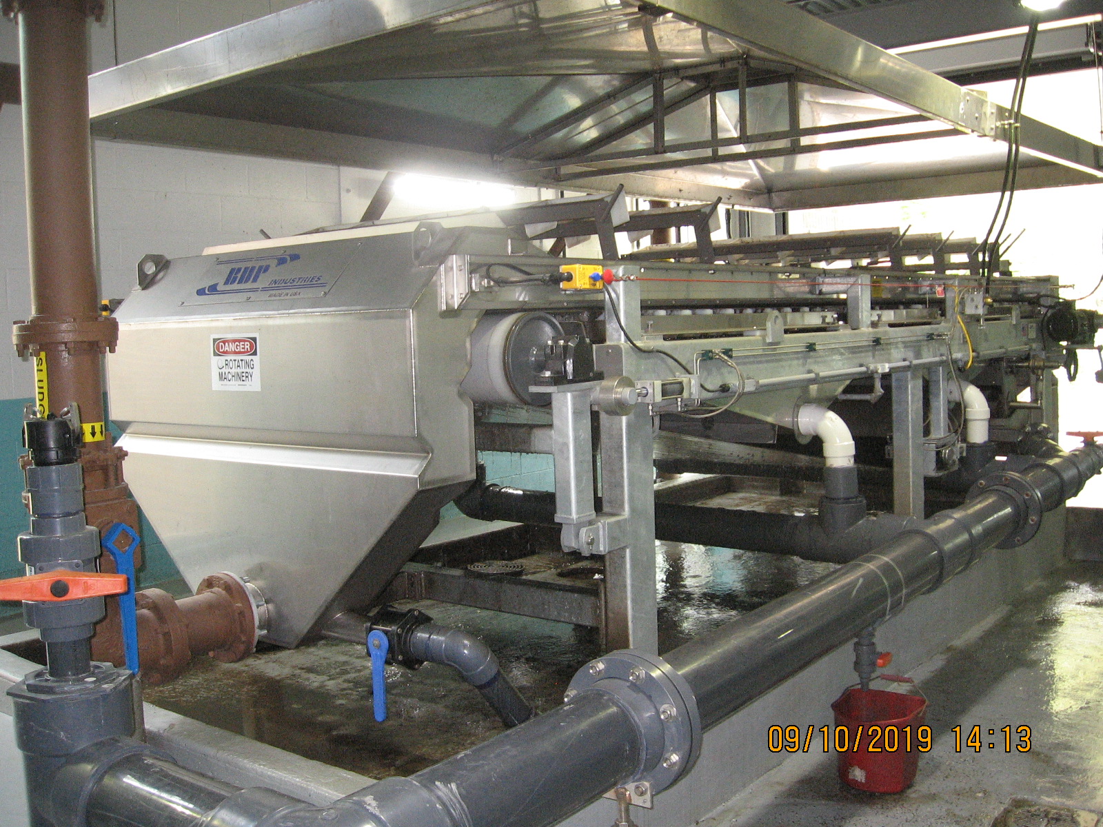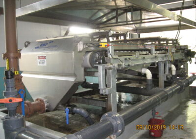 Sludge Thickening: The plant’s original dissolved air flotation thickener, installed around 1970, was replaced with a modern gravity belt thickener. This new system provides a higher solids capture rate, producing more concentrated solids and reducing the volume of sludge that needs processing, ultimately lowering operating costs.