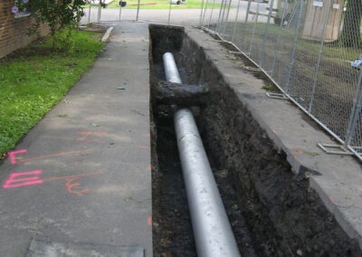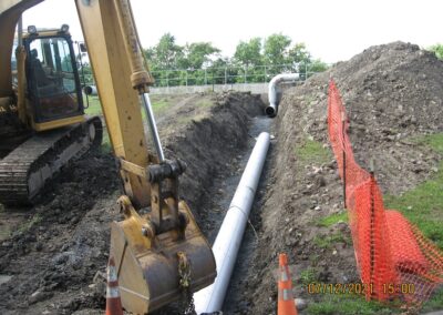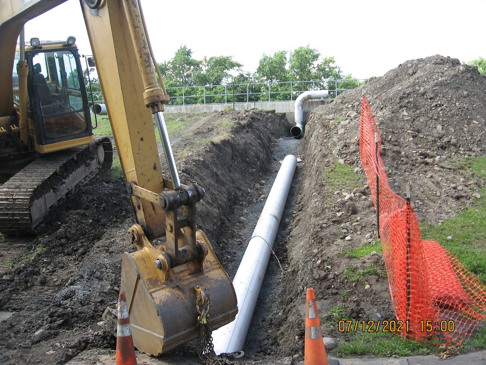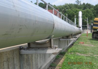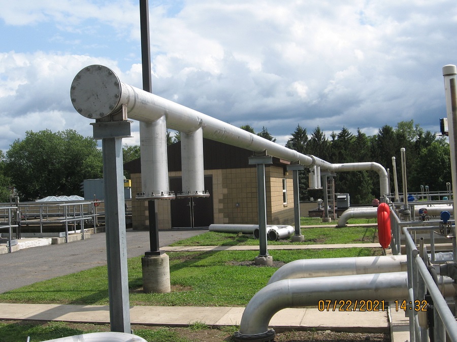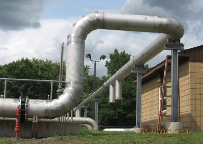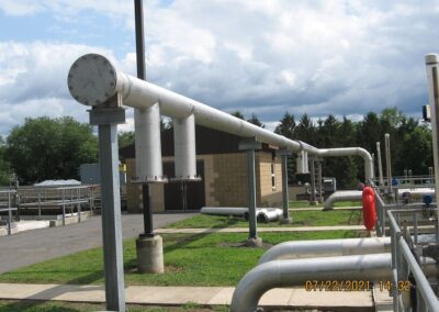 To address this issue, the old ductile iron pipeline was replaced with a new stainless-steel pipeline featuring welded joints. The new design eliminates mechanical joints, reducing the potential for deterioration and improving the efficiency and reliability of the aeration process, with the added benefit of energy savings. Additionally, the stainless-steel material offers enhanced durability and resistance to corrosion. Portions of the pipeline were constructed above ground to lower construction costs and avoid conflicts with the numerous existing underground utilities on the treatment plant site.