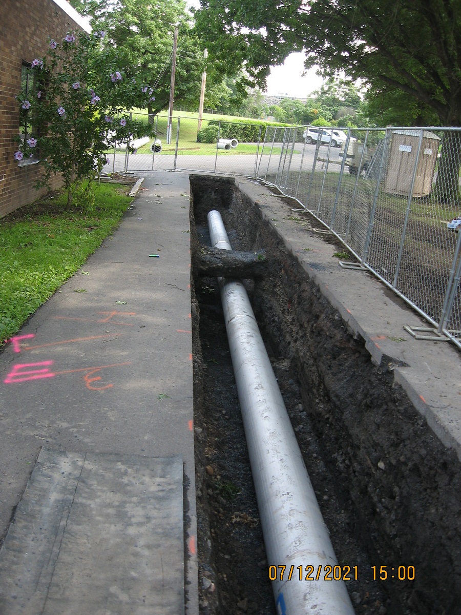 The Throop treatment plant utilizes a biological process to remove organic contaminants from wastewater. During this process, air is pumped into the treatment tanks, providing oxygen to beneficial microorganisms that break down the pollutants. However, the existing underground pipeline that delivered air to the treatment tanks had multiple pipe segments with leaking joints, leading to air loss. This required the air supply system to work harder, resulting in higher energy consumption to maintain adequate oxygen levels for the biological treatment process.